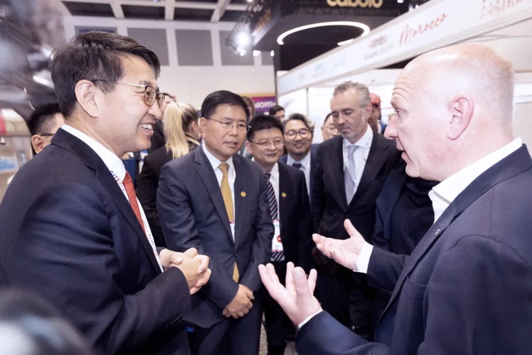 展会期间,柏林市长凯·韦格纳(Kai Wegner)、副市长弗兰齐丝卡·吉费(Franziska Giffey)一行专程前往新华三展台参观,并与紫光股份董事长、新华三集团总裁兼首席执行官于英涛会谈交流。凯·韦格纳、弗兰齐丝卡·吉费一行详细了解了新华三集团深化AI in ALL,加速AI for ALL,赋能全球客户加速落地人工智能应用的最新成果,对新华三到柏林参展表示热烈欢迎,期待新华三以更多创新科技助力欧洲智能化跃迁及绿色可持续发展。