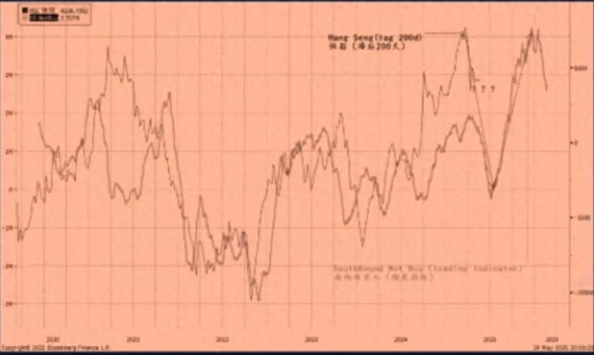 1,南向(北水)净买入是一个领先指标,领先恒指的走势大概100-200天。如果在三月份看到南向净买入达到一个历史性高点,那接下来3-6个月里头,我们应该会看到港股有第二个高点的出现。投资需要留意周期指标,只有拐点才能改变人生。